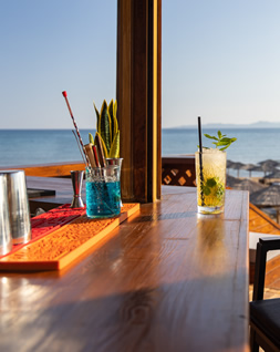 The music of the seawaves , the saltiness of the sea (almira) chilling out with a cocktail at the beach bar overlooking the Ionian Sea , getting cosy to watch the perfect sunset topped by our unparalleled service, will create the best of memories to take home with you.